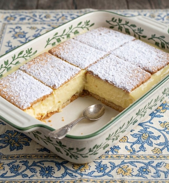A desszertet lefedve a hűtőbe tesszük legalább egy órára, ez idő alatt a keksz magába szívja a krém nedvességét, és kellemesen megpuhul. Tálalás előtt a tetejét bőségesen megszórhatjuk porcukorral. Hidegen szeletelve igazán krémes és lágy édesség, amely hamar kedvenc lesz.