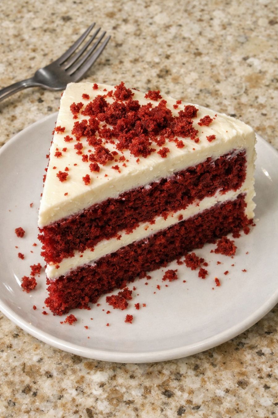 Tálald ezt a vörös bársonytortát nagy, bőséges szeletekben egy pohár hideg tejjel a gyerekeknek, vagy egy csésze forró kávéval a felnőtteknek. Egy kis adag tejszínhab minden szeleten még különlegesebbé teszi anélkül, hogy plusz munkát igényelne. Ha ünnepre vagy családi összejövetelre tálalod, helyezd közvetlenül a bézs gránitlapra vagy a szokásos konyhapultodra, hogy az emberek kiszolgálhassák magukat, és párosítsd valami egyszerűvel, például egy gyümölcssalátával vagy egy gombóc vaníliafagylalttal. A torta gazdag és szaftos, így nincs is sok másra szükséged – csak egy jó társaságra az asztal körül.