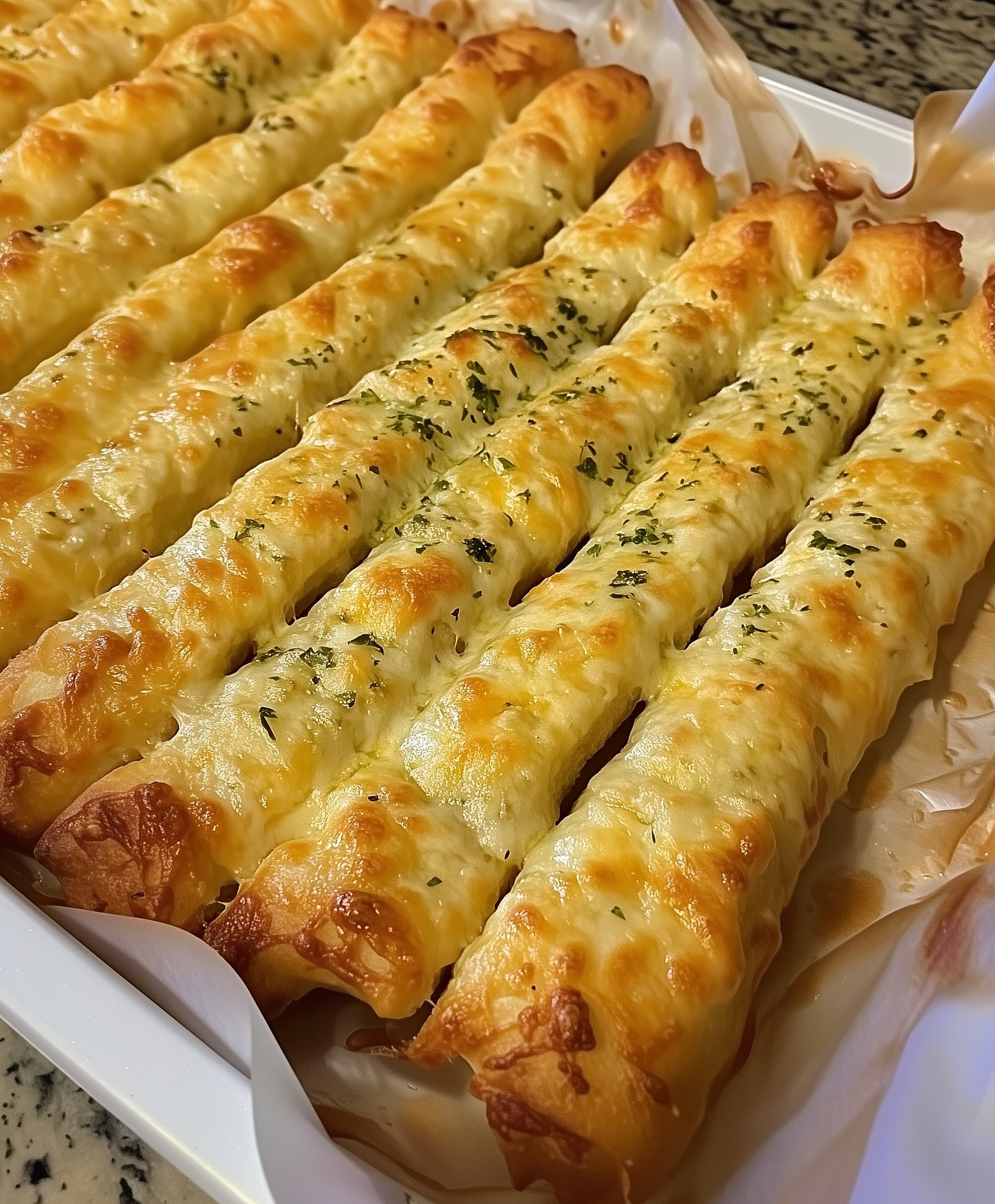 Aranyló, fokhagymás, olvasztott mozzarellától omlós, ezek a házi készítésű sajtos fokhagymás kenyérrudak a tömeg igazi kedvencei. Az egyszerűség kedvéért bolti pizzatésztából készülnek – de vajas fokhagymával, illatos fűszernövényekkel és dupla sajtréteggel fejezik be –, így olyan ízűek, mintha a kedvenc olasz éttermedből érkeznének. Kevesebb mint 30 perc alatt elkészülnek, tökéletesek hétköznapi vacsorákhoz, meccsnapi nassolnivalókhoz vagy tésztaételek köretéül. Egyetlen falat, és soha többé nem kell fagyasztott kenyérrudakhoz nyúlnod.