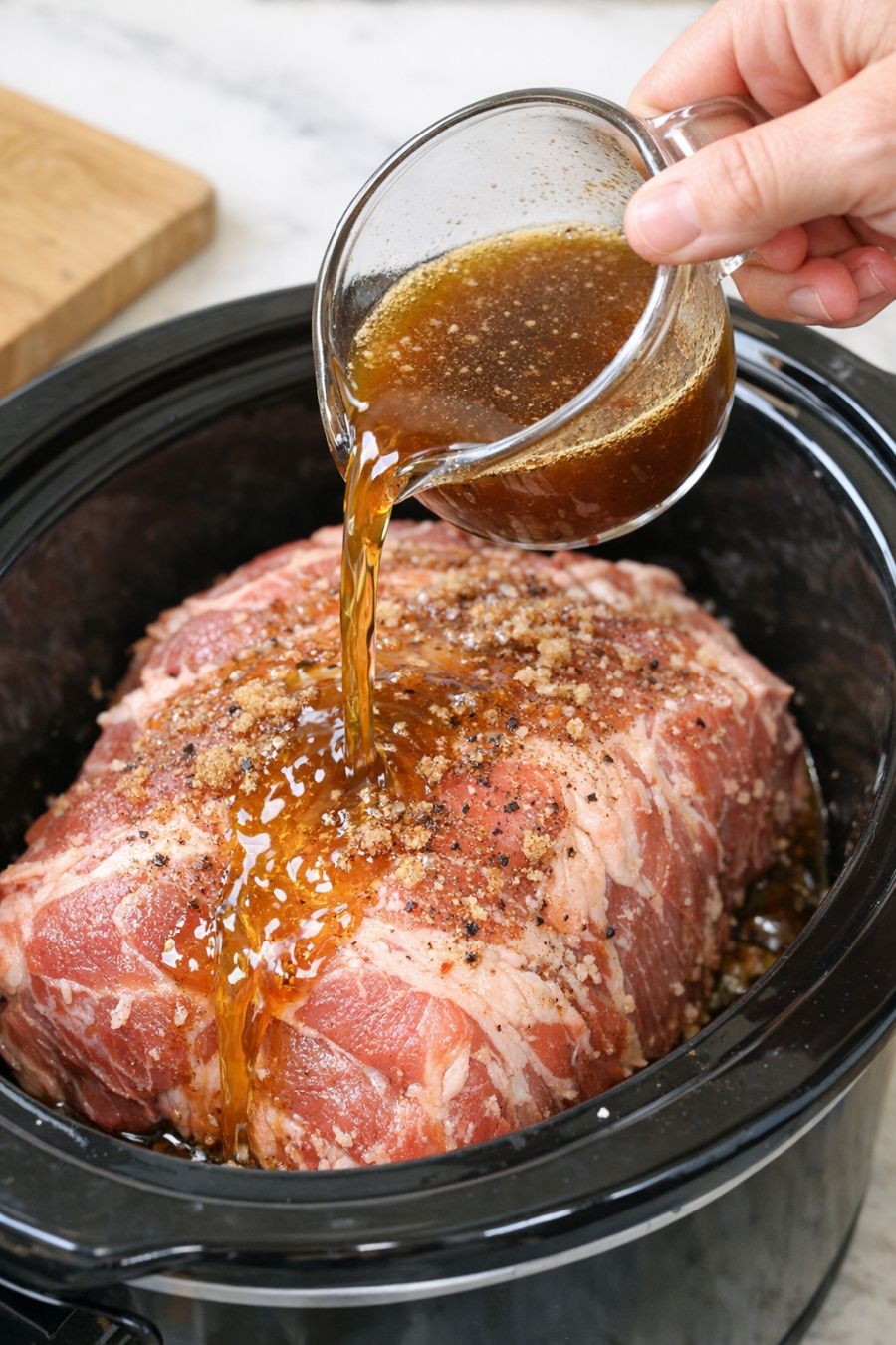 Ez a déli stílusú, lassú tűzhelyen készült tépett sertéshús a titkos fegyverem hétköznapokra: összekeversz egy ízletes levet, ráöntöd a nyers sertéslapockára a lassú tűzhelyen, és hagyod, hogy tegye a dolgát, amíg dolgozol. Az almaecet, a csirkehúsleves, a folyékony füst, a barna cukor és a worcestershire szósz keveréke adja azt a pikáns-édes, füstös ízt, ami olyan, mintha egész nap egy hátsó udvari füstölőben rágták volna. Kiadós, laktató, és tökéletes egy éhes család megetetésére vagy a hűtő feltöltésére maradékokkal, amelyek valahogy másnap még jobban ízlenek.