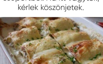 Hozzávalók (10 tekercshez): 5 db friss tésztalap (lasagne) 500 g gomba 3 szelet sonka 50 g vaj 50 g liszt…