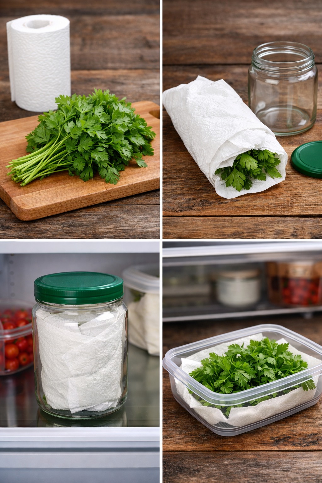 - Hűtés: Az üveget hűtőszekrényben tárolja. Ez a módszer akár két hónapig is frissen tartja a petrezselymet, megőrzi ízét és tápértékét.