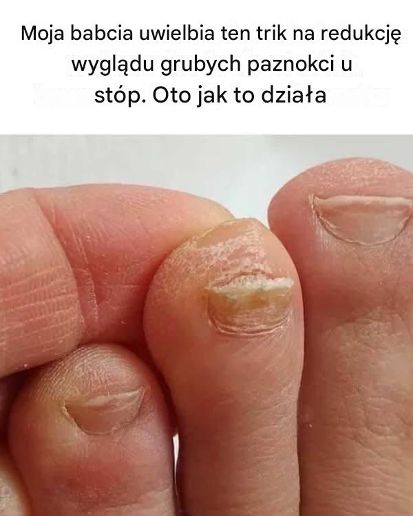 Według mojej babci, sposób na redukcję wyglądu grubych paznokci u stóp polega na prostym zabiegu z użyciem powszechnie dostępnych środków. Ta metoda jest przekazywana z pokolenia na pokolenie i pomogła wielu osobom utrzymać paznokcie w lepszej kondycji. Skuteczność tego triku tkwi w jego zdolności do zmiękczania, oczyszczania i stopniowego ścieńczania paznokci bez ich uszkadzania.