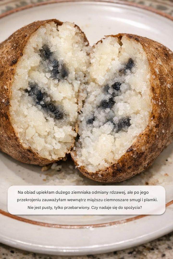 Upiekłam na obiad dużego ziemniaka rdzawego, ale po przekrojeniu go znalazłam w miąższu ciemnoszare smugi i plamki. Nie jest pusty, tylko przebarwiony. Czy nadaje się do spożycia?